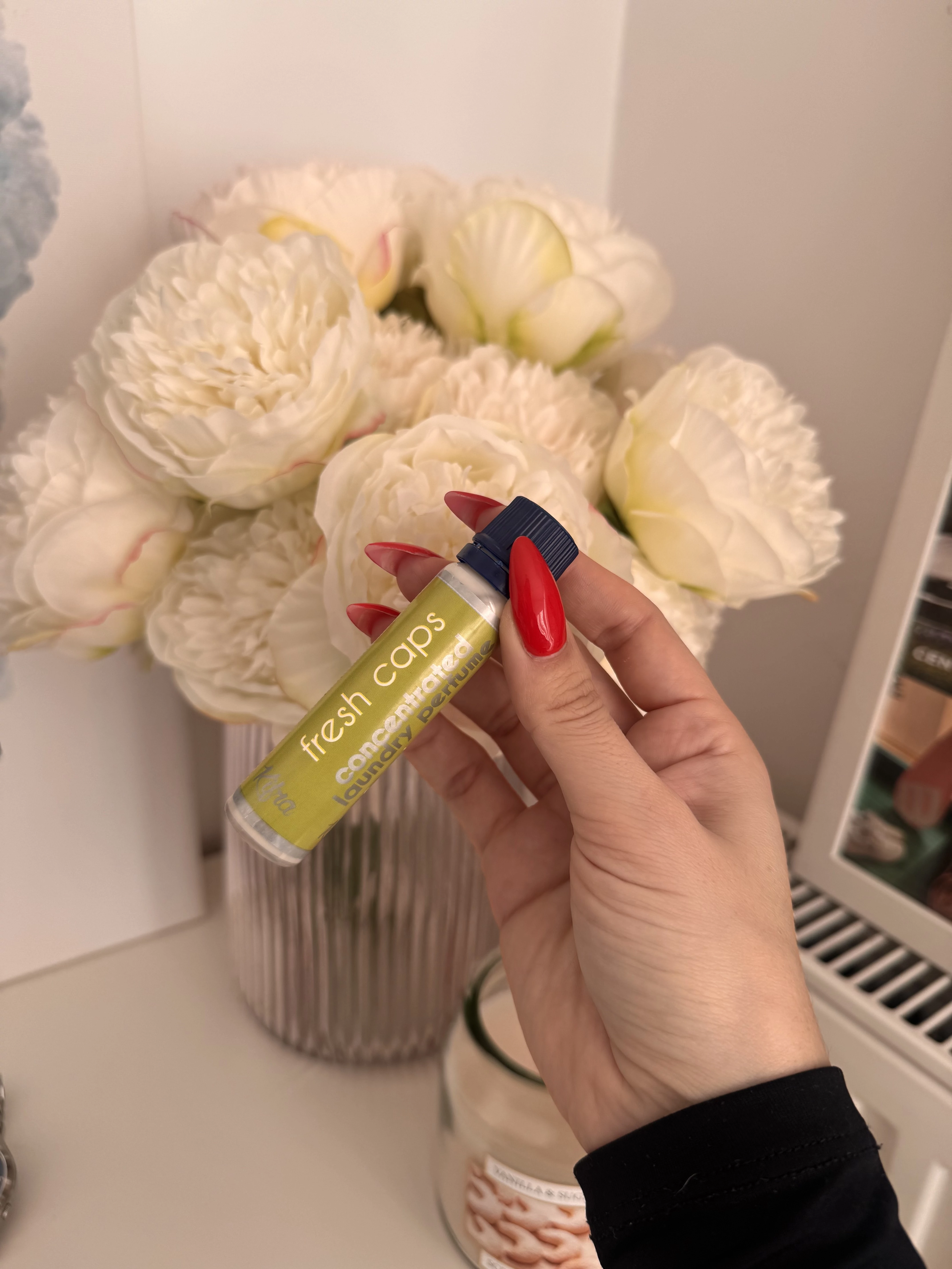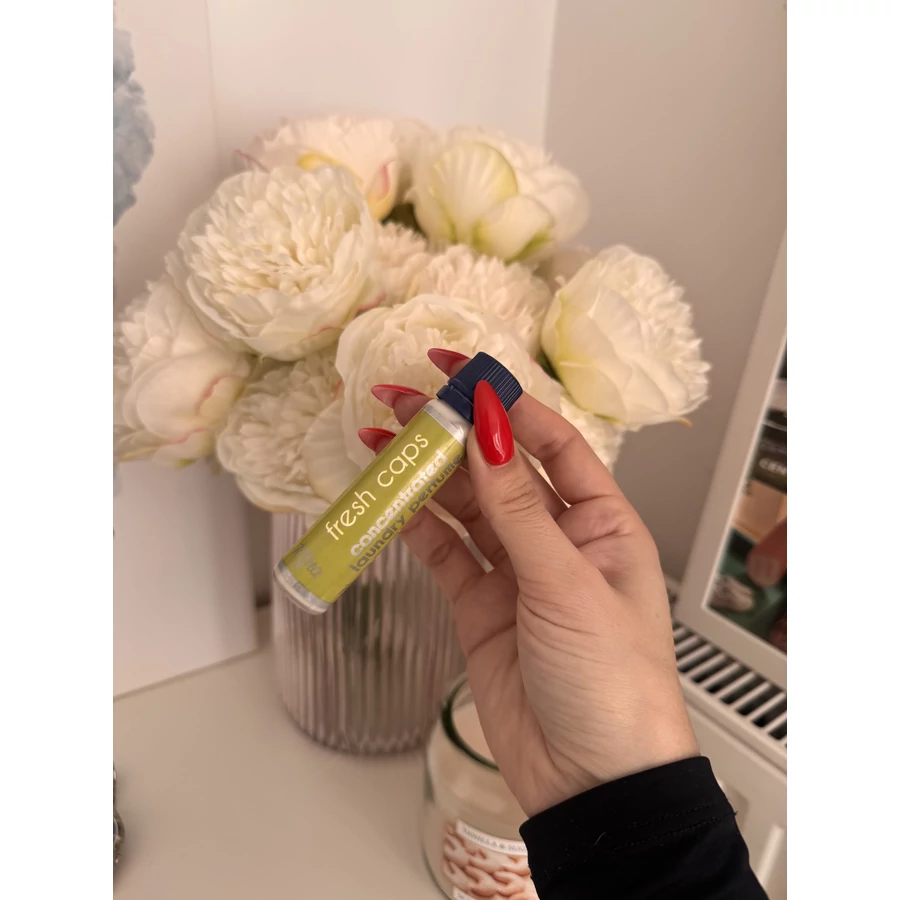 A Fresh Caps egy New Tech mosodai illat, amely a természet frissességét fejezi ki, tiszta aromákkal, természetes és pihentető jegyekkel. Intenzív és hosszan tartó illattal rendelkezik, és az illat előállításához használt új technológiának köszönhetően fokozatosan szabadul fel. A frissességi kapszulák érintésre aktiválódnak, ami azt jelenti, hogy ruhái a szó valódi értelmében hosszan tartó frissességet élveznek. A Fresh Caps mosodai illat legnagyobb előnye, hogy hatása akár 6 hónapig is tart, ha a ruhákat a szekrényben tárolja. Megőrzi az anyagok frissességét egyik évszakról a másikra. Ez egy krémes púderes illat, uniszex, mégis kicsit rágógumis pamutos illat. Egyik igazán nagy favorit, amivel ajándékként sem lehet mellélőni.